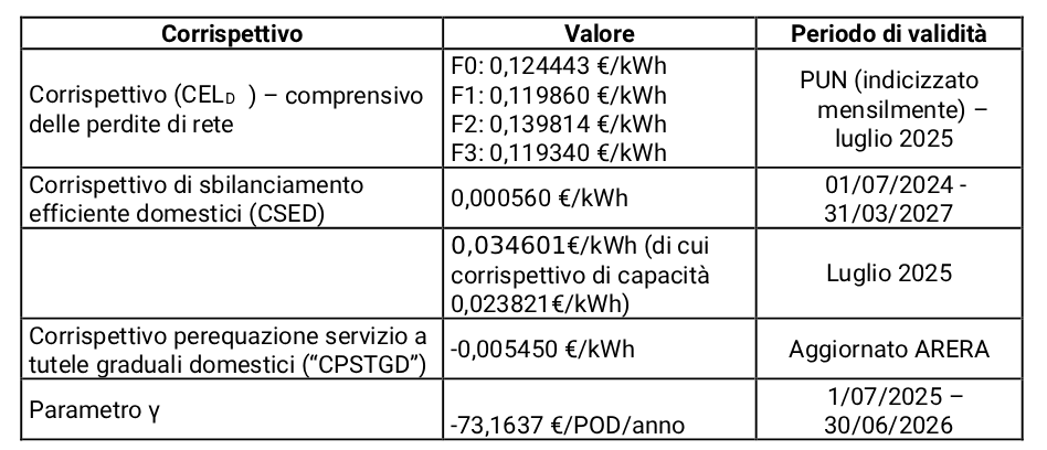 relativi al Servizio a tutele graduali; - Il parametro γ espresso in centesimi di euro/kWh, applicato ai clienti in tutele graduali nel periodo di